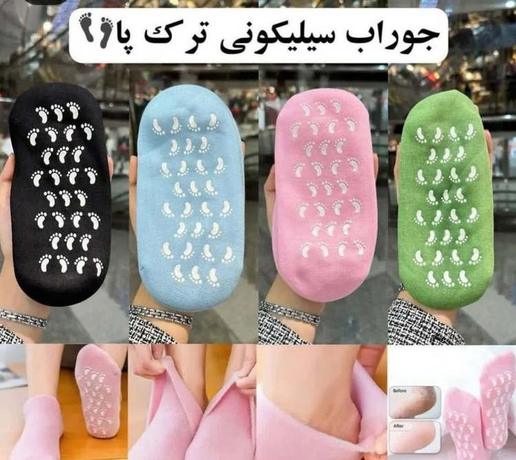 ویژگیهای جوراب سیلیکونی ترک پا 👇👇👇 مواد ساخت:این جورابها معمولاً از سیلیکون طبی یا مواد ژلی نرم و ایمن برای پوست ساخته شدهاند که ظرفیت بالایی در حفظ رطوبت دارند. تسهیل در حفظ رطوبت:با ایجاد یک سد حفاظتی بر روی پوست، مانع از تبخیر رطوبت میشوند و به حفظ آبرسانی طولانیمدت به پوست کمک میکنند. کاهش درد و التهاب:استفاده مداوم از این جورابها میتواند به تسکین درد ناشی از ترکهای عمیق و التهابات پوستی کمک کند. قابلیت استفاده دوباره:این جورابها قابل شستشو و استفاده مجدد هستند، که این امر آنها را گزینهای اقتصادی و دوستدار محیطزیست میسازد. انعطافپذیری و راحتی:جورابهای سیلیکونی معمولاً طوری طراحی شدهاند که به راحتی بر روی پا قرار گیرند و فشار زیادی به پا وارد نکنند. نحوه استفاده از جوراب سیلیکونی ترک پا پاکسازی پوست پا:قبل از پوشیدن جورابهای سیلیکونی، پاها باید تمیز و خشک باشند. استفاده از مرطوبکننده:برای نتایج بهتر، یک لایه ضخیم از کرم مرطوبکننده یا کره پا بر روی نواحی ترکخورده بزنید. پوشیدن جورابها:پس از اعمال مرطوبکننده، جورابهای سیلیکونی را برای مدت زمان توصیه شده به پا کنید، که این میتواند شامل استفاده طول شب هم باشد.