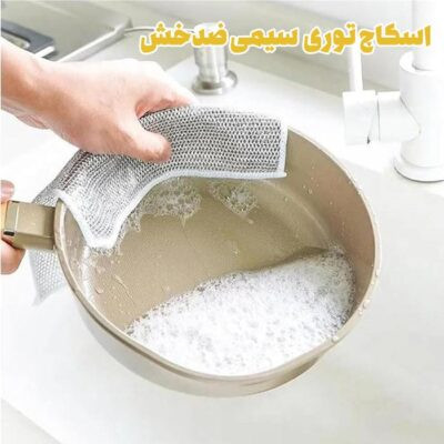 جنس 2 لایه وارداتی با کیفیت بسیار کارآمد در نظافت سطوح ،آشپزخانه، حمام و سرویس بهداشتی بدون ایجاد خش و مناسب برای سطوح جساس مثل اجاق گاز مقاوم در برابر شستشوهای مکرر و طول عمر طولانی ضد بو و ضد باکتری با کف کنندگی مناسب جنس سیمی آلومینیومی با تراکم مناسب طراحی مربعی دور دوخت شده با ابعاد حدود 25 سانتی متری قدرت تمیز کنندگی بالا
