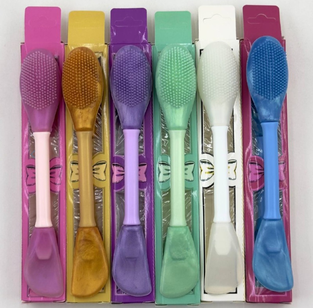 براش ماسک دو طرفه پرزدار ساده طلق دار Double Silicone Face Cleansing Brush سبک و خوش دست پاکسازی عمیق پوست رفع مشکلات پوستی دارای دو سر سیلیکونی سر قلمی مناسب برای زدن ماسک و اسکراب روی صورت سر سیلیکونی دیگر ماساژ و شستشو صورت ابزاری برای استفاده در روتین پوستی رفع جوش های سرسیاه مناسب استفاده شخصی و سالن داران افزایش گردش خون در پوست